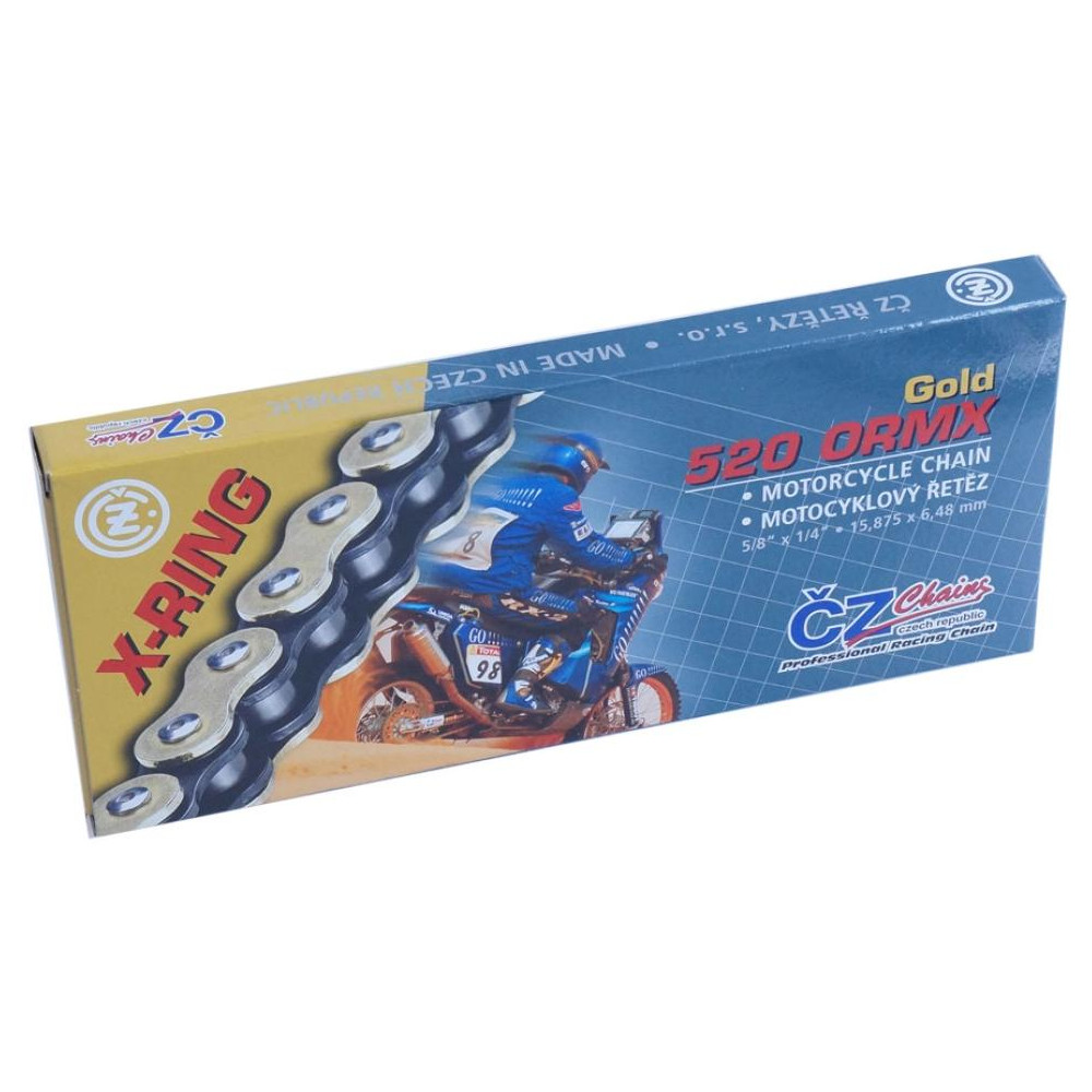 Řetěz CZ 520 ORMX 118 článků, X-kroužek zlatý, pevnost v tahu 34500 N.