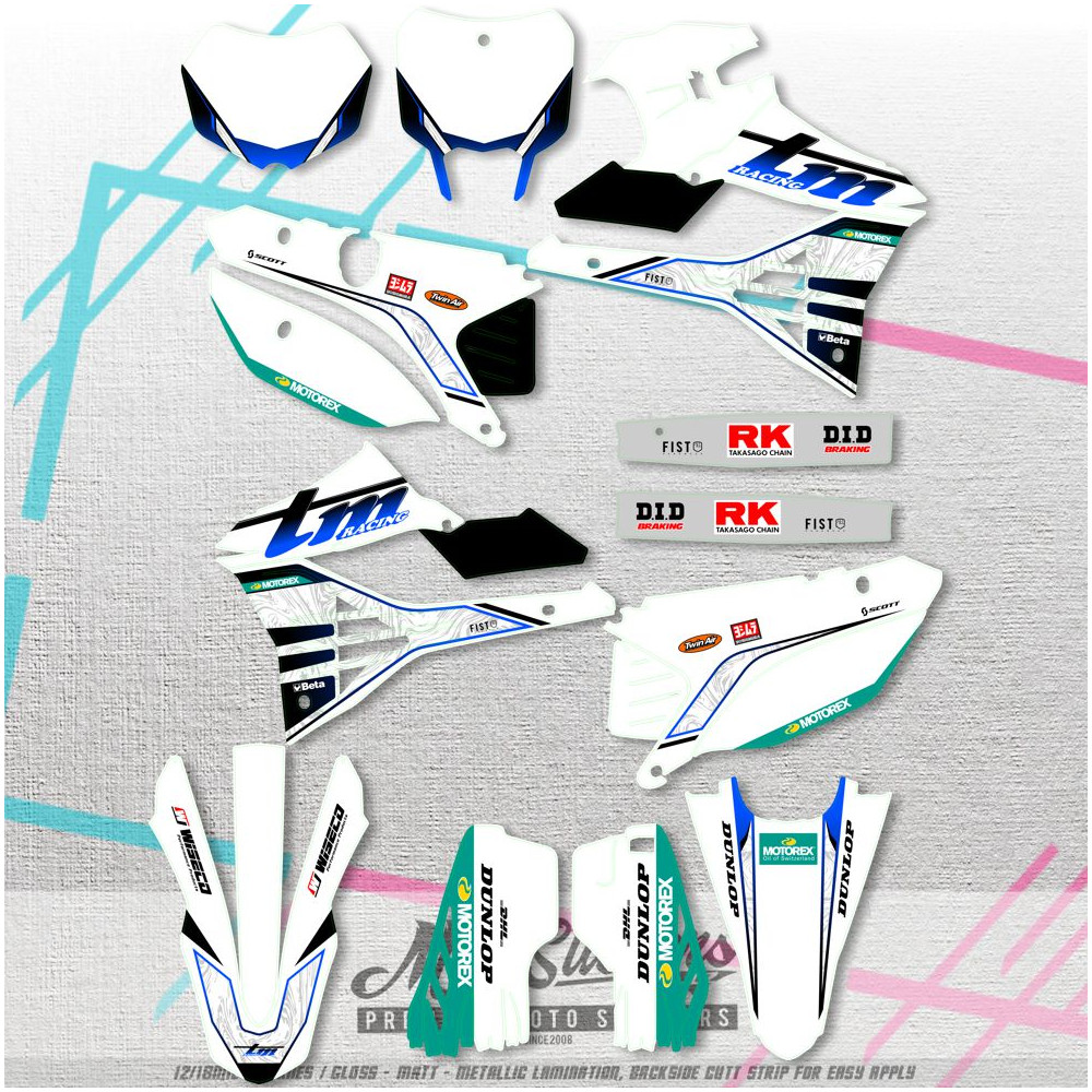 TM MX 125 144 250 2022 2023 2024 2025 kompletní samolepky pro motocykl se dvěma výfuky